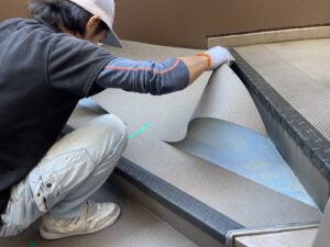 階段の長尺を全て撤去した後左官工事にて勾配調整後長尺シートにて終わらせた現場です。